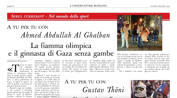 L'Osservatore Romano: a tu per tu con un ragazzo di Gaza che ha perso le gambe ma non la speranza