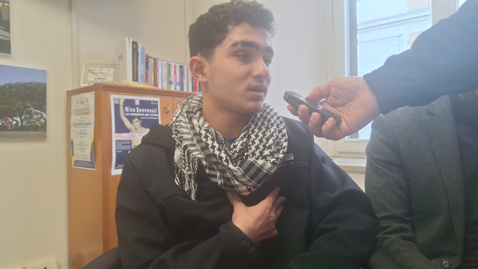 L'intervista di Giancarlo La Vella e Giampaolo Mattei (presidente di Athletica Vaticana) ad Ahmad Al Ghalban è emozionante e drammatica, A tradurre il racconto del ragazzo è stato un altro giovane palestinese (con un passato da rifugiato e oggi cittadino italiano) Ahmad Taha, coordinatore Auxilium delle case famiglia per minori del Protettorato San Giuseppe.