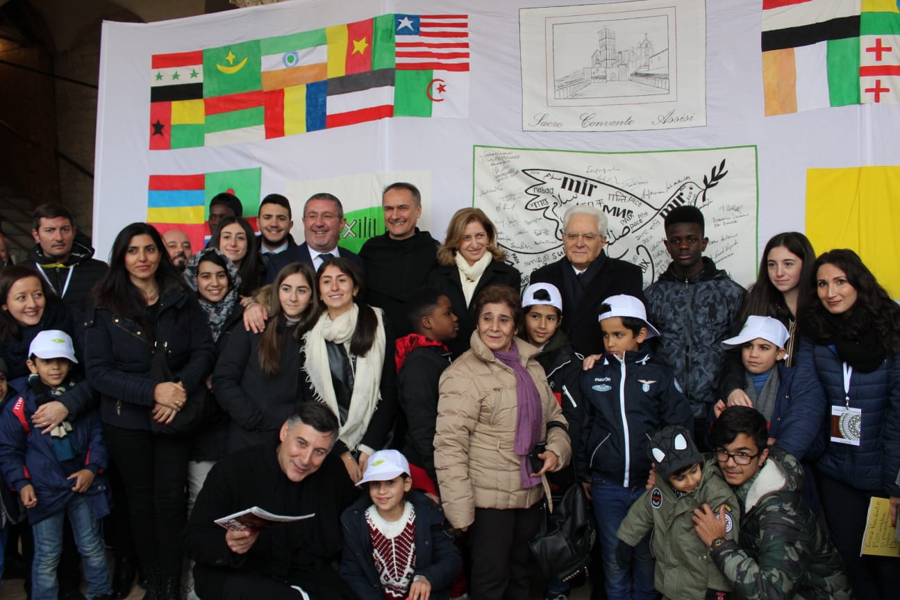 “C’è bisogno di un grande impegno alla Pace di una grande educazione alla Pace. Credo di poter dire qui nella casa di san Francesco che questa educazione ha un punto di partenza che si può esprimere con un semplice termine: insieme. Conoscersi, rispettarsi, apprezzarsi, operare insieme per il comune progresso”. Le parole usate del Presidente della Repubblica, Sergio Mattarella, subito dopo aver ricevuto la Lampada della Pace dal custode del Sacro Convento di Assisi, hanno colpito tutti. Questo perché il Presidente Mattarella, con grande semplicità, è andato al cuore dell’impegno del nostro Paese, quello di costruire insieme il futuro per un mondo migliore. In questa occasione, il Presidente ha voluto firmare la Bandiera della Pace Auxilium, fermandosi con il gruppo Auxilium, circondato dai bambini che, con i loro genitori, sono accolti al Mondo Migliore, con i ragazzi migranti, con gli operatori Auxilium e con Angelo Chiorazzo che ha affermato: “Siamo orgogliosi del fatto che il Presidente della Repubblica Italiana, Sergio Mattarella, abbia voluto firmare la Bandiera della Pace di Auxilium. É per noi un segno della volontà del nostro Paese di riconoscersi nel dialogo, nell'incontro, nell'accoglienza e nell'inclusione. Ed è un riconoscimento a tutti i lavoratori della cooperativa Auxilium." "E' una giornata di festa" ha sottolineato il direttore della Sala Stampa del Sacro Convento, Padre Enzo Fortunato, nel presentare la giornata di Assisi alla quale ha partecipato anche il cardinale Gualtiero Bassetti, presidente della Cei, il Ministro dell’Interno Luciana Lamorgese, che ha firmato la Bandiera della Pace e il Legato Pontificio per la Basilica di San Francesco, cardinale Agostino Vallini. La cooperativa Auxilium è lieta di essere stata, ancora una volta, accanto i francescani del Sacro Convento di Assisi in questa straordinaria giornata.
