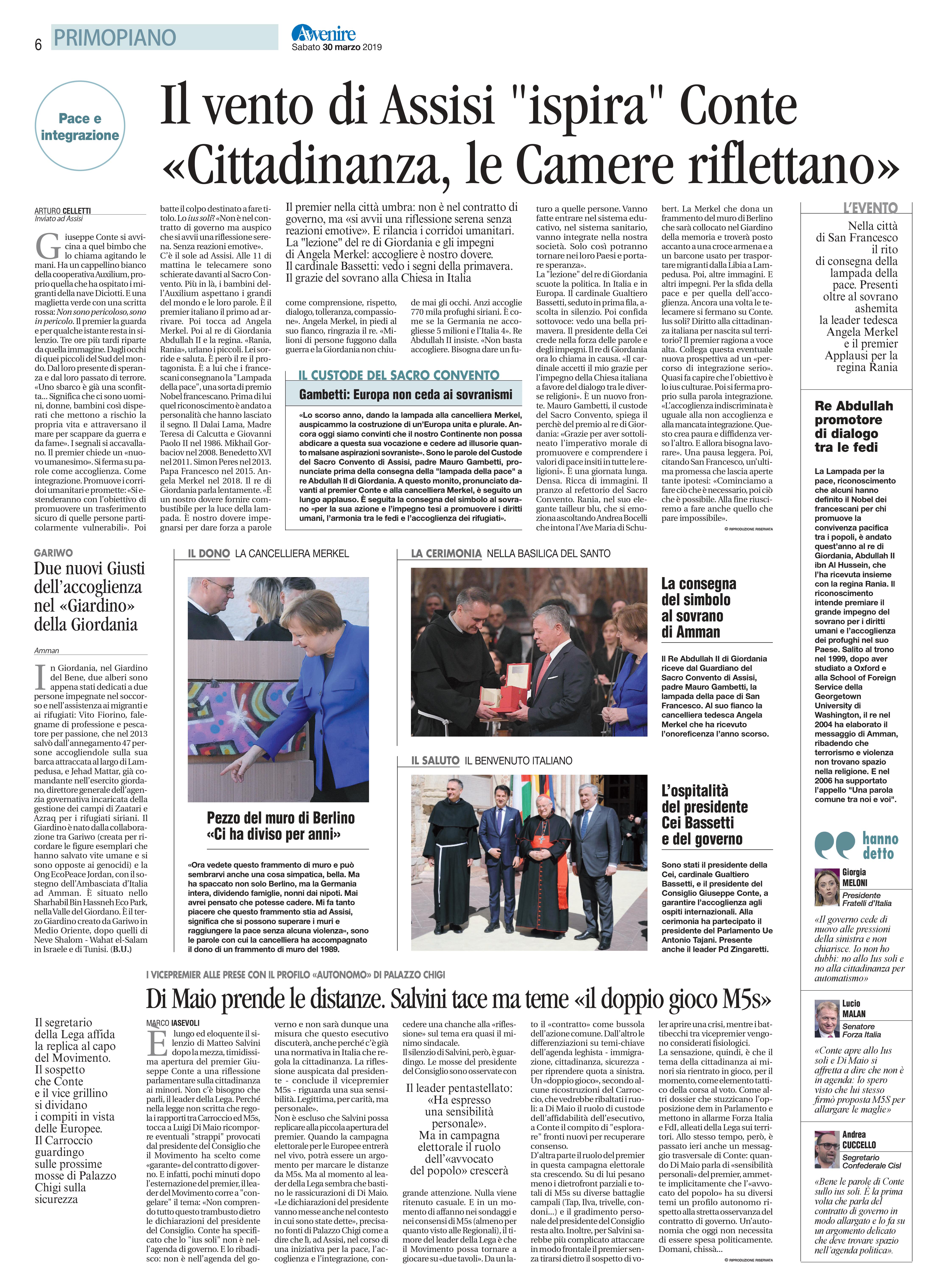 Una straordinaria giornata ad Assisi, accanto ai francescani per la cooperativa Auxilium. Una giornata che Padre Enzo Fortunato ha definito un momento storico per tutta la loro comunità, quello della consegna della Lampada della Pace al re di Giordania Abdullah II e alla Regina Rania. Dalla città di San Francesco è partito un messaggio di dialogo e fratellanza al Mondo che rappresenta una boccata di ossigeno in un periodo segnato dalla riedificazione di tanti muri. I reali di Giordania, un Paese che è d’esempio nell’accoglienza, sono stati accolti ad Assisi dal custode padre Mauro Gambetti, dalla cancelliera tedesca Angela Merkel, dal presidente della Cei, il cardinale Gualtiero Bassetti e dal presidente del Consiglio dei Ministri, Giuseppe Conte. Il re Abdullah ha affermato: “San Francesco, a cui questa santa Basilica è dedicata, è conosciuto in tutto il mondo per la sua compassione verso tutti gli uomini e gli altri esseri viventi. Questo tipo di amore verso il prossimo è un importante insegnamento per tutti noi”. Mentre, la cancelliera Merkel, ricordando l’incontro dello scorso anno e la firma della Bandiera della Pace, al suo arrivo si è fermata a salutare i bambini del gruppo di Auxilium. E a loro si è rivolta quando, nel corso dell’inaugurazione dei frammenti del muro di Berlino che ha donato alla Basilica di Assisi, ha spiegato: “Questo muro ha diviso per tanti anni la mia città, ha diviso le famiglie e io sono cresciuta pensando che quel muro sarebbe esistito per sempre e invece oggi non c’è più. Ed è crollato senza che ci fosse violenza”. Momento reso ancora più bello dal coro dei cento migranti ospiti di Mondo Migliore che hanno intonato "We are the world". Alla fine di questa giornata che ha davvero lasciato il segno, il re Abdullah, come annunciato, ha voluto apporre la sua firma sulla Bandiera della Pace che per prima fu autografata da Papa Francesco. Un gesto che ha particolarmente emozionato, perché il re giordano ha voluto riaffermare che è sempre possibile collaborare nella costruzione di un mondo migliore.