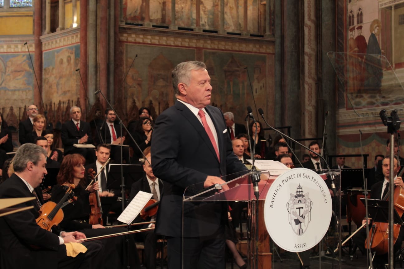 Ad Assisi il Re di Giordania, Abdullah II, ha ricevuto la Lampada della Pace e ha firmato la Bandiera della Pace Auxilium.