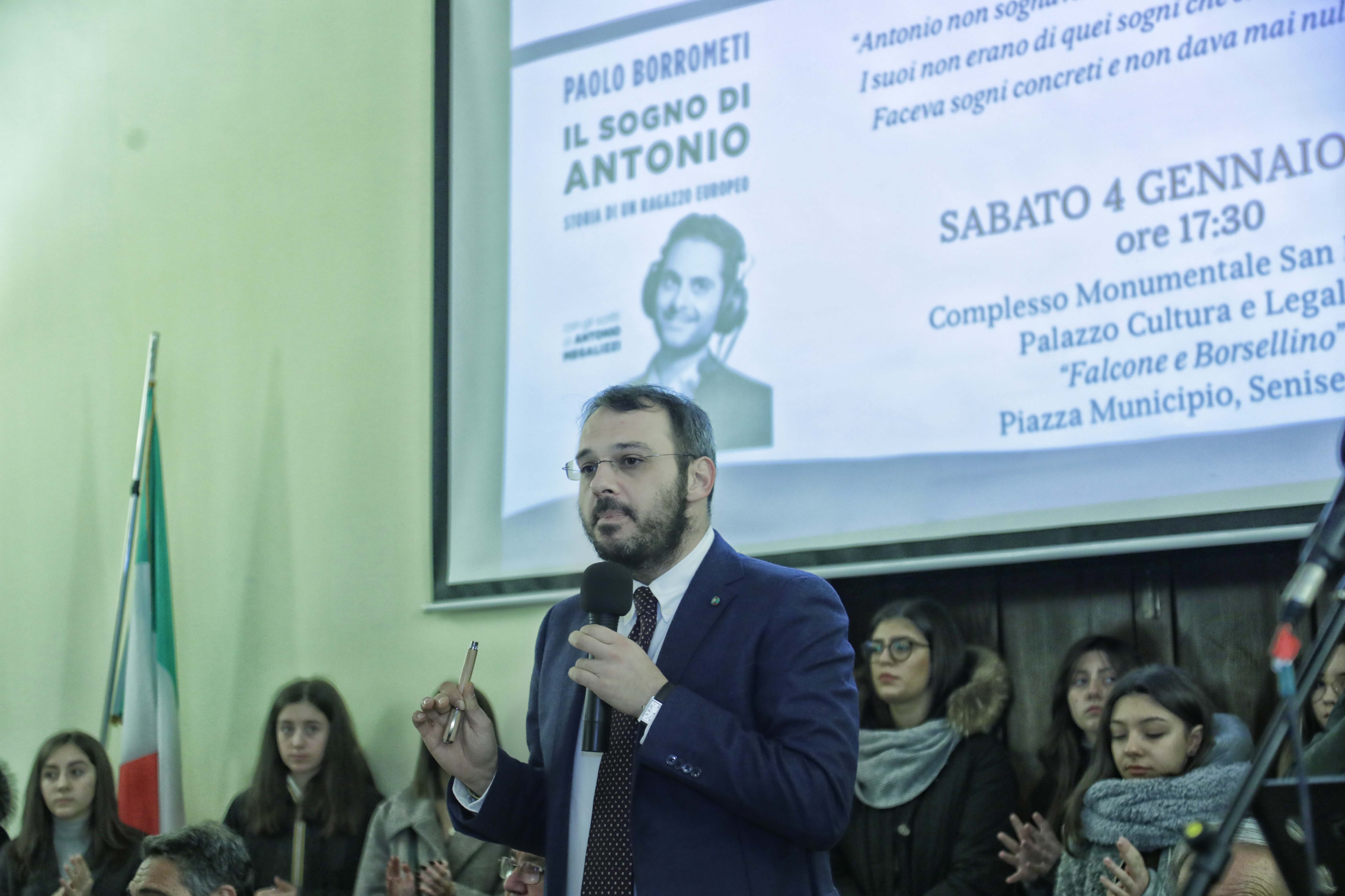 "Il sogno di Antonio", l'ultimo libro di Paolo Borrometi è stato presentato a Senise il 4 gennaio. Ne hanno discusso Claudio Granata di Eni, Raffaello De Ruggieri, sindaco di Matera e monsignor Vincenzo Orofino, vescovo della Diocesi Tursi-Lagonegro. L'incontro è stato introdotto da Angelo Chiorazzo.