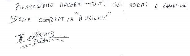 Ringraziamo ancora tutti gli addetti e lavoratori della cooperativa “Auxilium”.