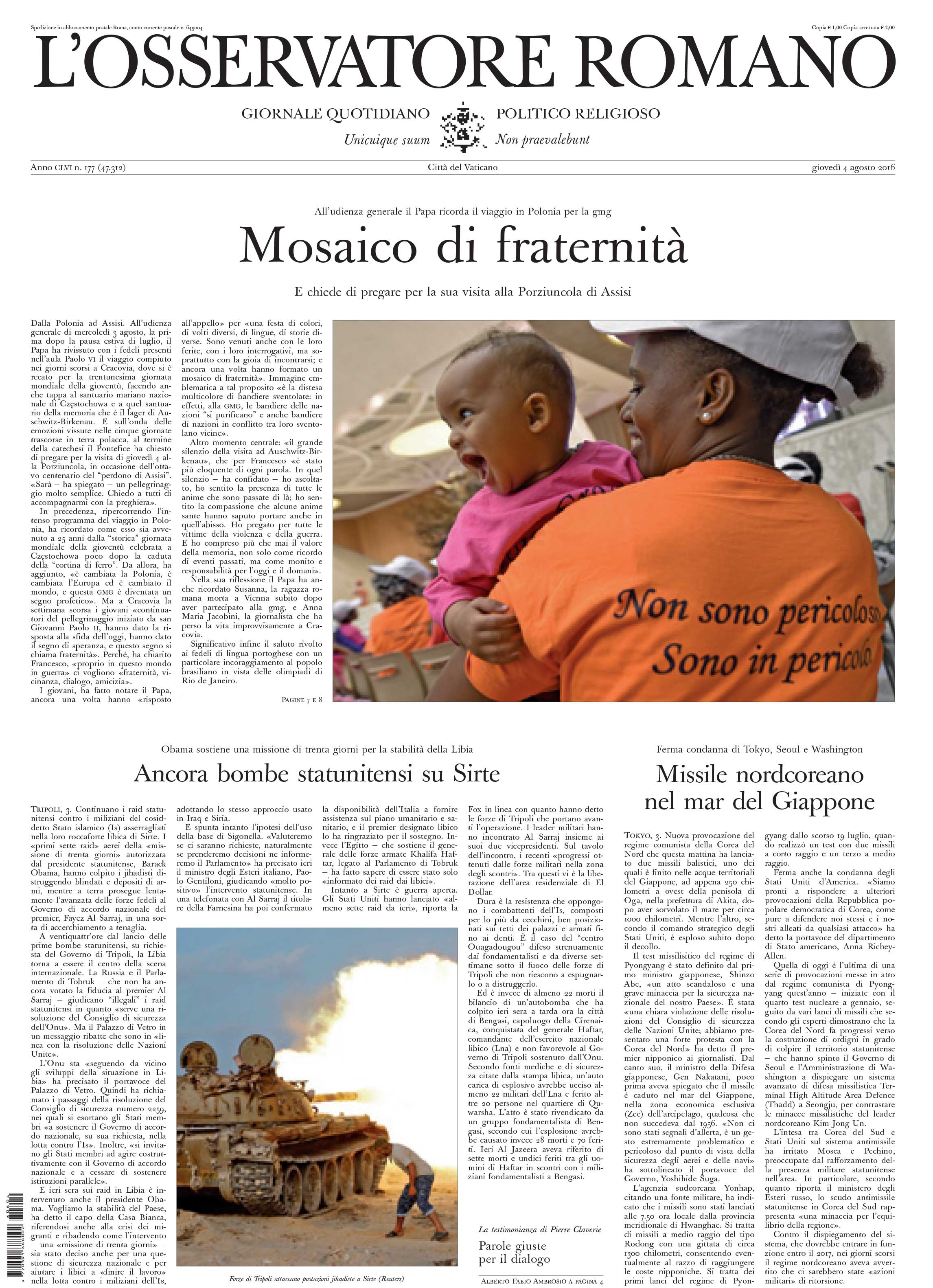 Osservatore Romano, Mosaico di fraternità